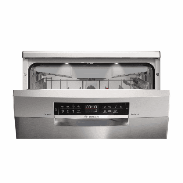 Khoác lên mình tông màu xám bạc thời thượng cùng chất liệu thép không gỉ cao cấp, Bosch SMS6ZCI85M không chỉ bền bỉ mà còn góp phần tôn lên vẻ đẹp hiện đại cho không gian bếp. Với khả năng rửa lên đến 14 bộ đồ ăn châu Âu, tương đương 3-4 bữa ăn của gia đình Việt, máy đáp ứng tốt nhu cầu của các gia đình đông thành viên hoặc những dịp tụ họp bạn bè.