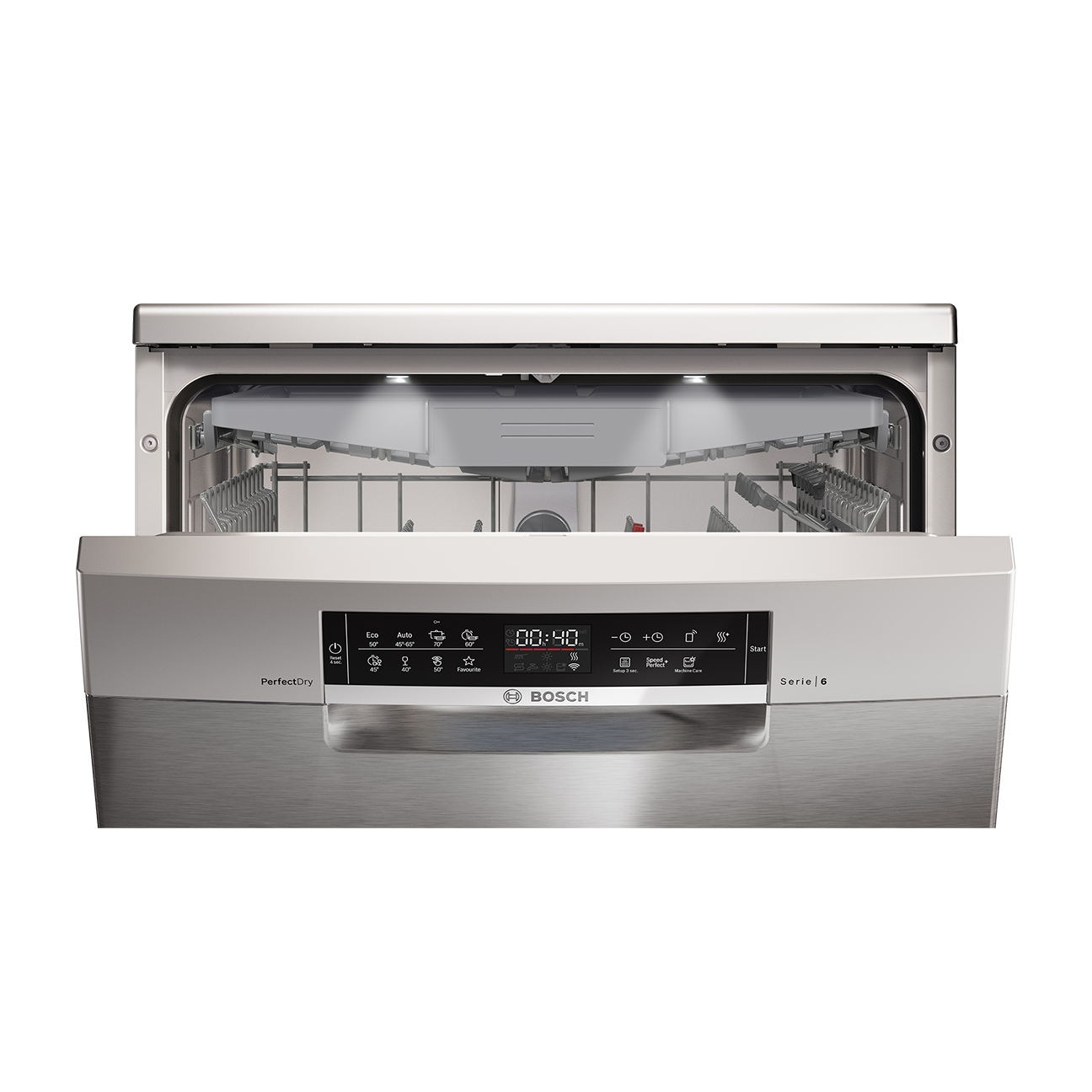 Thêm vào đó, với công nghệ Home Connect, người dùng có thể dễ dàng điều khiển, theo dõi và nhận thông báo về hoạt động của máy rửa bát từ xa thông qua ứng dụng trên điện thoại thông minh, mang lại trải nghiệm tiện nghi và chủ động.