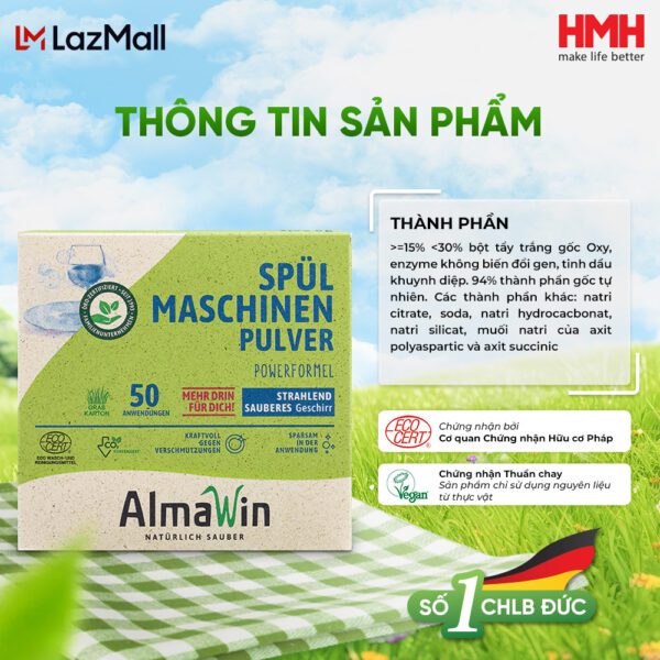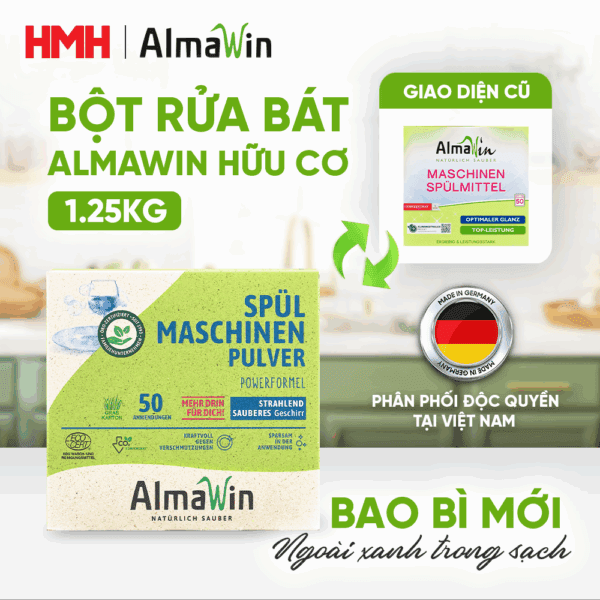 Bột rửa bát Almawin hữu cơ hương chanh là sản phẩm chất tẩy rửa hữu cơ cao cấp đến từ Đức. Với những ưu điểm vượt trội về độ an toàn, hiệu quả và thân thiện với môi trường, bột rửa bát Almawin đã được nhiều người tiêu dùng Việt Nam tin tưởng lựa chọn.