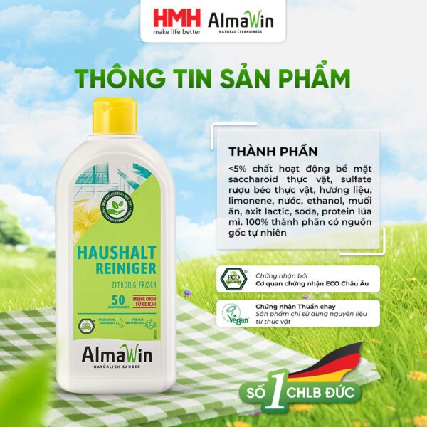 Nước tẩy đa năng Almawin là một sản phẩm được sản xuất bởi Công Almawin Reinigungskonzentrate GmbH (Almawin) tại Đức. Với thành phần chính là các chiết xuất từ thiên nhiên, Almawin đã trở thành lựa chọn hàng đầu của nhiều gia đình khi cần tìm kiếm một sản phẩm vệ sinh an toàn và hiệu quả. Trong bài viết này, chúng ta sẽ tìm hiểu về các tính năng và ưu điểm của dung dịch vệ sinh đa năng Almawin hương chanh. Và tại sao nó lại được xem là sự lựa chọn hoàn hảo cho gia đình bạn.