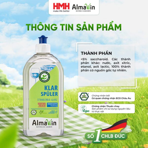 Nước làm bóng cho máy rửa bát từ thương hiệu Almawin là sản phẩm cần thiết. Sản phẩm với thành phần có nguồn gốc tự nhiên nên rất an toàn.