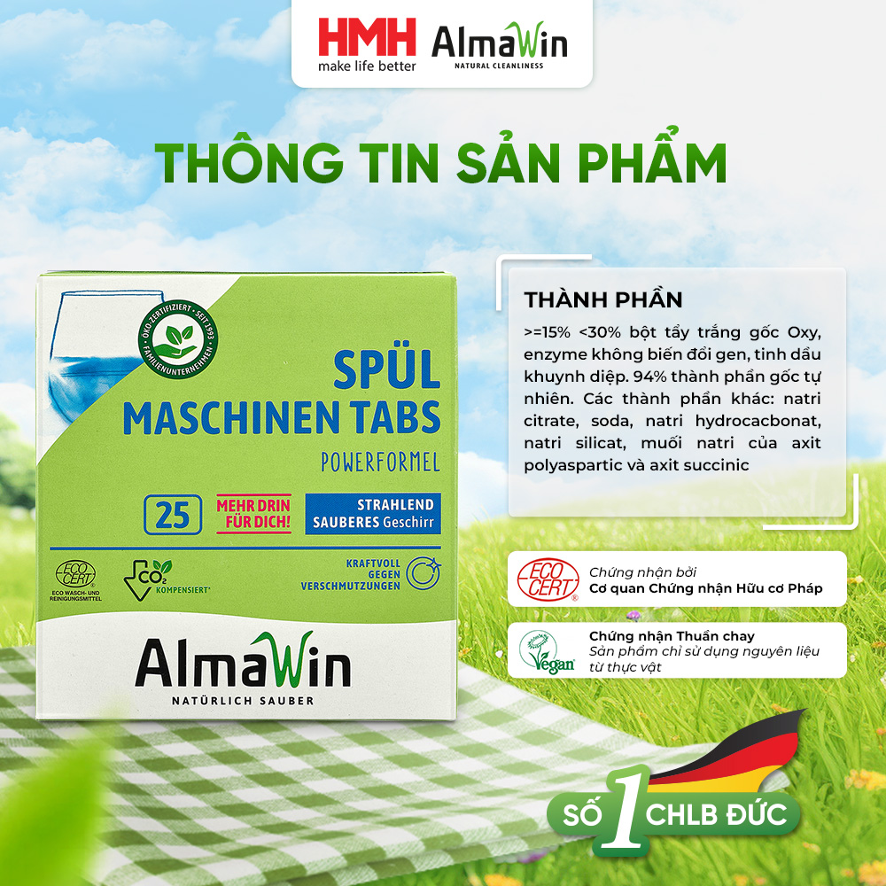 Almawin được người tiêu dùng ưa chuộng bởi sự an toàn, mùi hương dịu nhẹ, sạch vết bẩn và tính năng bảo vệ da tay. Các sản phẩm chất tẩy rửa hữu cơ Almawin như: nước giặt Almawin, nước rửa chén tinh chất hương quýt, tinh chất hương hoa hồng, viên rửa bát Almawin…